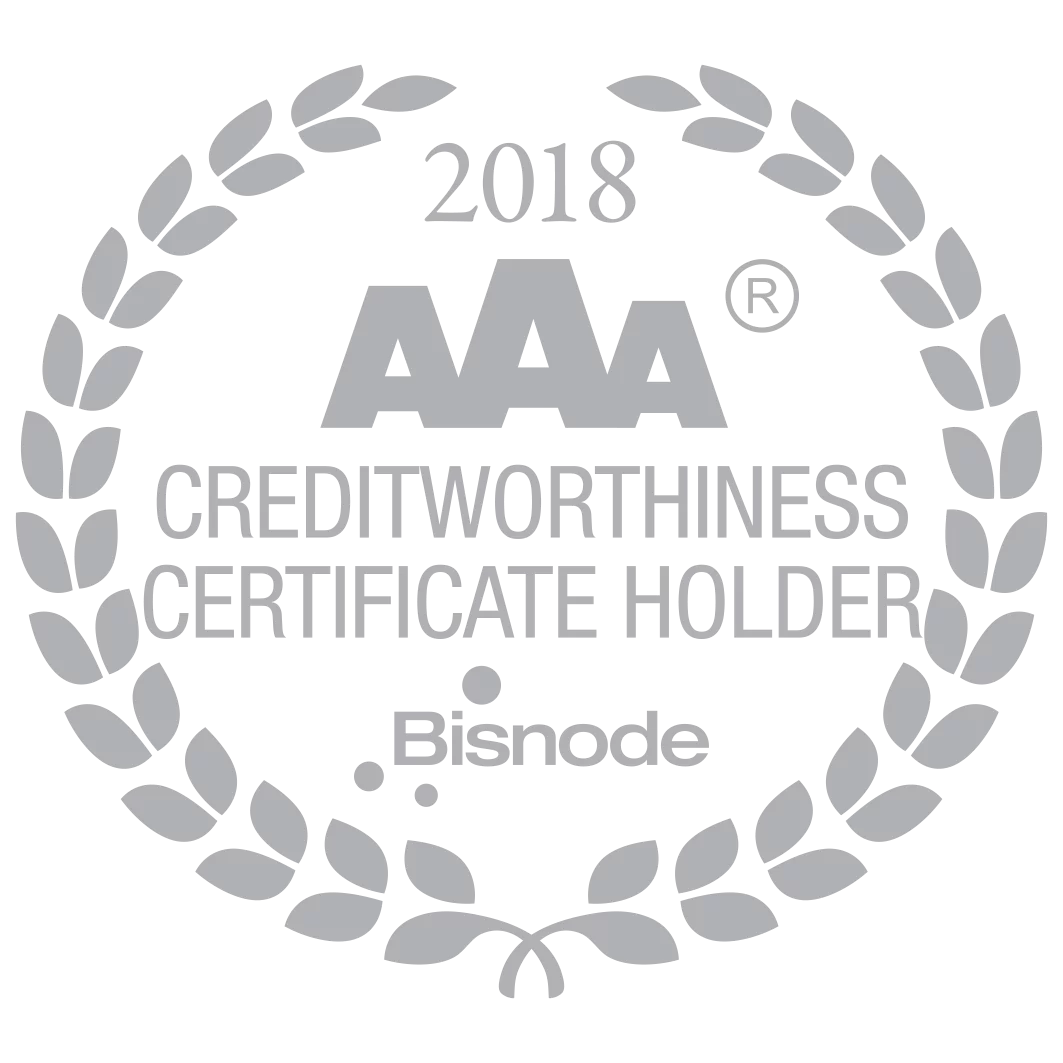 S ponosom ističemo da nam je za 2018. godinu izdan Certifikat bonitetne izvrsnosti s najvišim rejtingom AAA te nam je to priznanje da naša tvrtka pripada u skupinu od 5% najboljih poduzeća u Republici Hrvatskoj, što potvrđuje ovaj međunarodno priznati Certifikat bonitetne izvrsnosti, koji je ujedno i referenca da smo siguran, ugledan i poželjan partner.