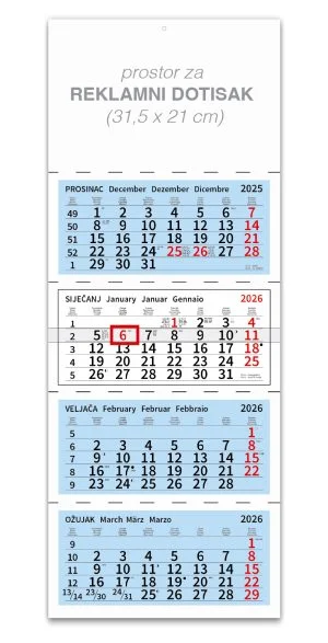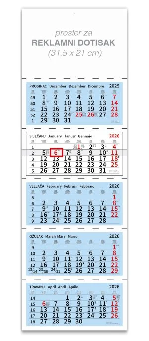 Zidni kolorni, stolni, džepni i poslovni kalendari različitih dimenzija i aplikacija.