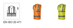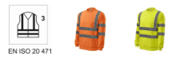 EN ISO 20471:2013 (klasa 3) – ova norma specificira uvjete koje mora ispunjavati odjeća visoke vidljivosti koja vizualno signalizira korisnikovu prisutnost. Odjeća visoke vidljivosti namijenjena je pružanju vidljivosti nositelja u svim svjetlosnim uvjetima, da bi ga vidjeli operatori vozila ili druge mehanizirane opreme tijekom dnevnih svjetlosnih uvjeta, ali i pod osvjetljenjem prednjih svjetala u mraku.