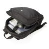 Streamlined styling and intelligently placed features add up to a minimalist footprint with this 600D & 1680D polyester backpack. 1 big main compartment sized to fit laptops with up to 17 inch displays. Second compartment with practical organisation for everything else you need to carry. With side mesh water bottle pocket. PVC free.