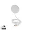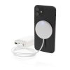 Snap on this magnetic wireless charger to the back of your iPhone 12 to charge your device. The magnets are perfectly aligned to always ensure the right charging position on your phone. The ABS material wireless charger is compatible with all QI devices (Iphone 8 and up and Android devices) so on other phones it can be used as a regular wireless charger. Including 100 cm TPE material micro USB cable. Item and accessories PVC free. Input DC 5V/1.5A; Output 5V/1.0A (5W) 11 pcs high quality N52H heat resistant magnets integrated.