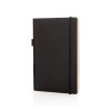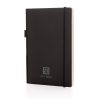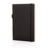 This FSC® deluxe hardcover notebook features a FSC-certified paper cover with elastic pen loop and ribbon page marker in matching black accent. In the back you willl find a pocket to store your loose notes. 80 sheets/160 pages of cream, FSC®-certified lined paper.