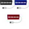 Aluminijski USB razdjelnik s 4 priključka, USB verzije 2.0, izlazni napon 5V.