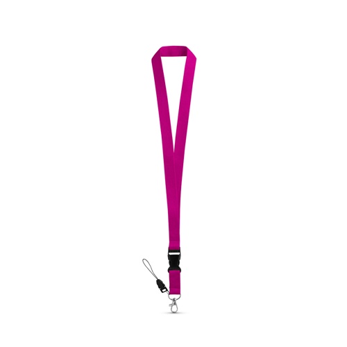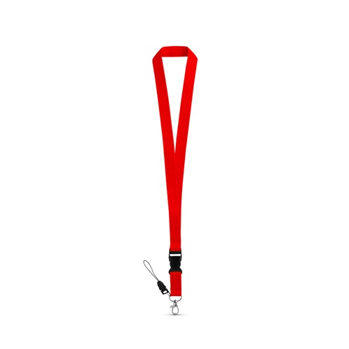 Vezica od poliestera sa metalnom karabinjerom, kopčom koja se može ukloniti i vrpcom za mobilni telefon. 20 x 530 mm