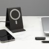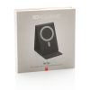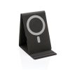 Flat and foldable 10W wireless charger. The PU material charger can be used both flat and as a stand. Wireless charging in stand function is made for Iphone 12 and higher using magnetic charging. For other wireless charging phones, it is recommended to use it in flat mode. The 10W wireless charger is compatible with all QI devices (Iphone 8 and up and Android devices) Type-C input 9V/2A; Wireless Output 9V/1.1A;; Including 120 cm PVC free TPE material charging cable. 19 pcs high quality N52H heat resistant magnets integrated. Registered design.