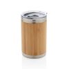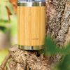 This unique bamboo coffee tumbler comes with 304 foodgrade and rustproof stainless steel interior walls and organic bamboo exterior. Perfect size to fit most coffee machines. Keep your drinks hot for up to 3h and cold for up to 6h. Content: 270 ml.