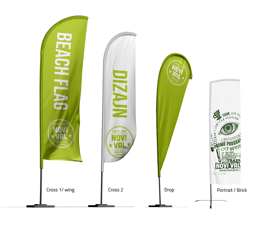 Beach flag je popularan marketinški alat, idealan za sajmove i razne događaje, prikladan za vanjsku i unutarnju upotrebu.