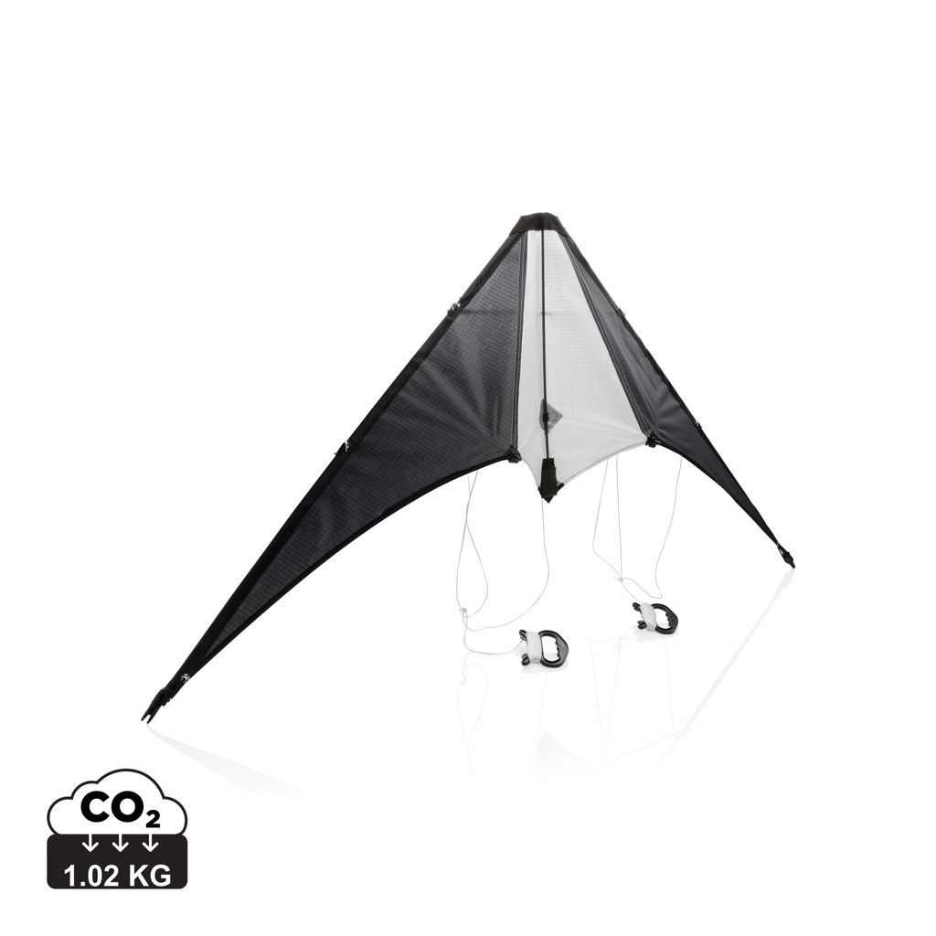 Delta zmaj pakiran u torbici za ponijeti na plažu ili na odmor. S kabelom od 30 metara i ručkama za visoko letenje zmaja. Izrađen od čvrstog ripstop poliestera. Dekoracija/Tisak: Screen transfer Naknada za setup: 165.00 Cijena dekoracije/tiska: