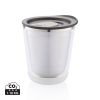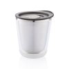 Closable, insulated and compact enough to fit under the coffee machine (227 ml). It is also very hygienic due to the lining of the mug being made out of stainless steel and not plastic. Designed so that the mug is easy to take apart for recycling. Registered design®