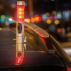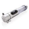Emergency light, silver ABS case, 1 white LED and 9 red flash lights at side, cutter, window breaker and magnetic base to place on the roof of the car.