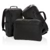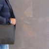 Be effortlessly stylish when carrying this all black PU laptop bag This bag holds a compartment for all your essentials and a laptop compartment that can hold a 15.6″ laptop. PVC free.