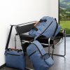 600D 2 tone polyester backpack with fashionable brown details on the handles and zippers.