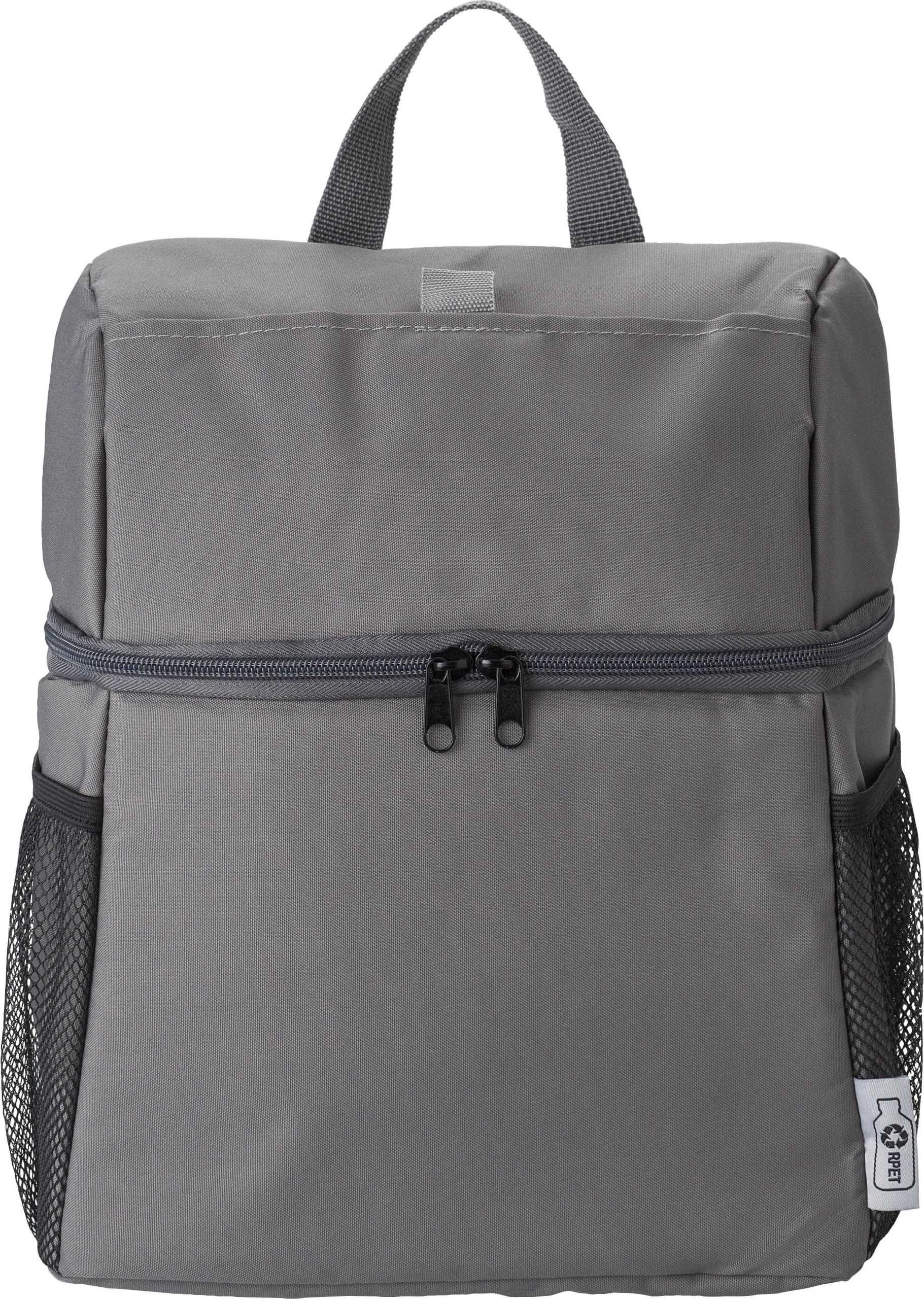 Hladnjak ruksak od recikliranog poliestera (300D/PU RPET) s PEVA (13C) podstavom. Jedan prednji džep sa zatvaranjem na čičak, dva mrežasta džepa sa strane. Podesivi naramenice.