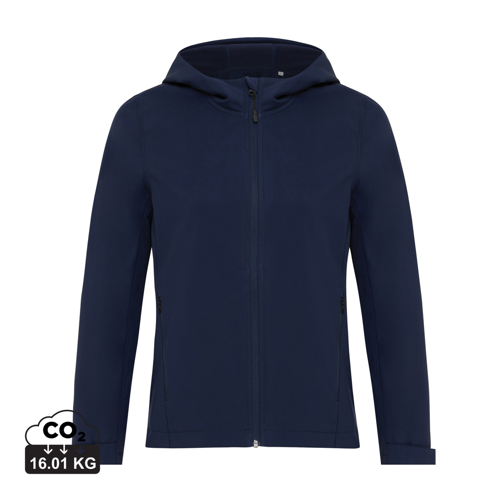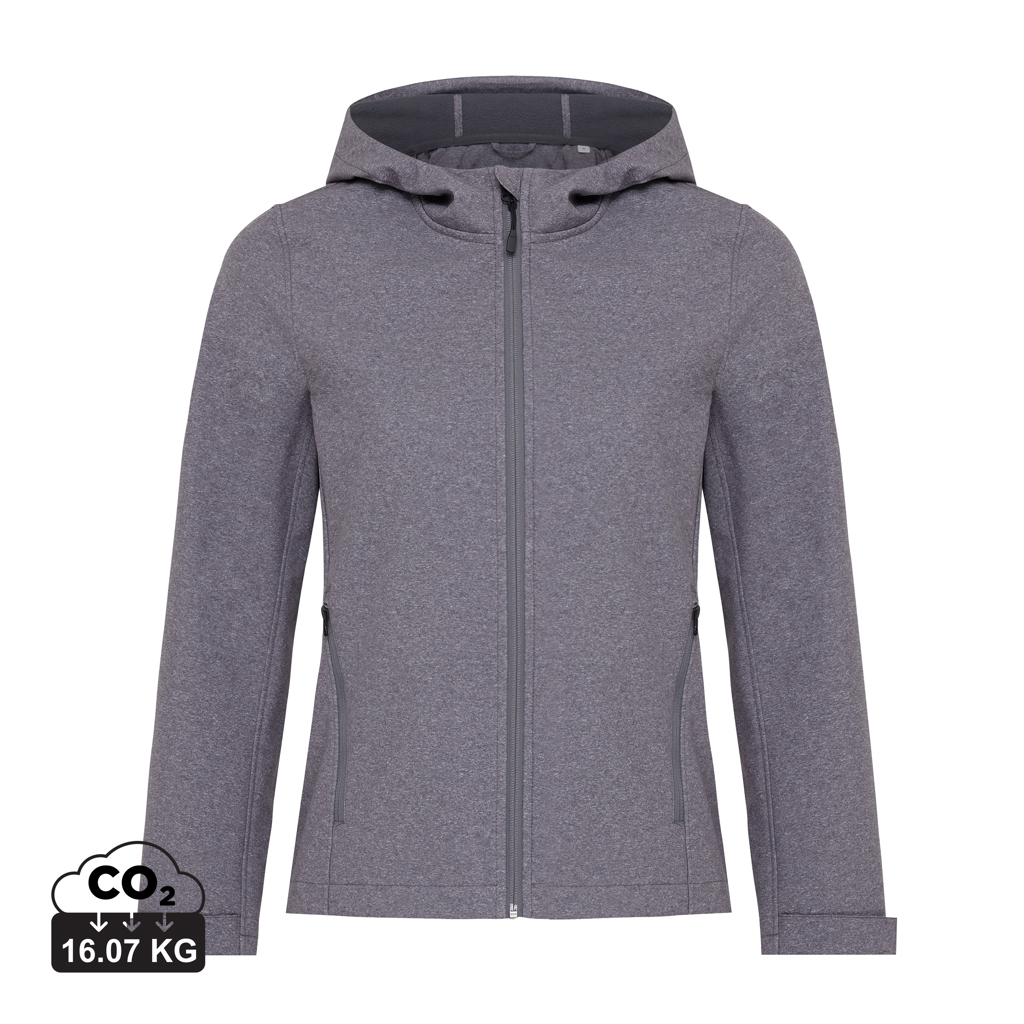 Ženska softshell jakna srednjeg kroja izrađena od recikliranog poliestera s troslojnom tkaninom od 300 G/M², s recikliranom TPU membranom i mekim mikrofliseom iznutra. Jakna ima obrnuti patentni zatvarač sprijeda i džepove s patentnim zatvaračem u bočnim šavovima. Ima podesivu kapuljaču s unutarnjim stoperima za bolju zaštitu. Manžete rukava podesive su čičak trakom. Promišljeni detalj dodatnog patentnog zatvarača i čista završna obrada s unutarnje strane s recikliranim vezom. Jakna je vodoodbojna s BIONIC-FINISH® ECO (tkanina je s recikliranom TPU membranom vodootporna do 5000 mm). Otporna na vjetar i prozračna do 3000 g/m2/24 sata. Upotreba originalnih recikliranih materijala i tvrdnje o utjecaju na okoliš zajamčene su korištenjem AWARE™ disruptivnog fizičkog tragača i blockchain tehnologije. Skeniranjem QR koda dobit ćete pristup namjenskoj digitalnoj putovnici. 2% prihoda od svakog prodanog proizvoda bit će donirano Water.org-u. Ovaj proizvod ima OEKO-TEX® STANDARD 100 certifikat. Dostupna i u muškoj varijanti.