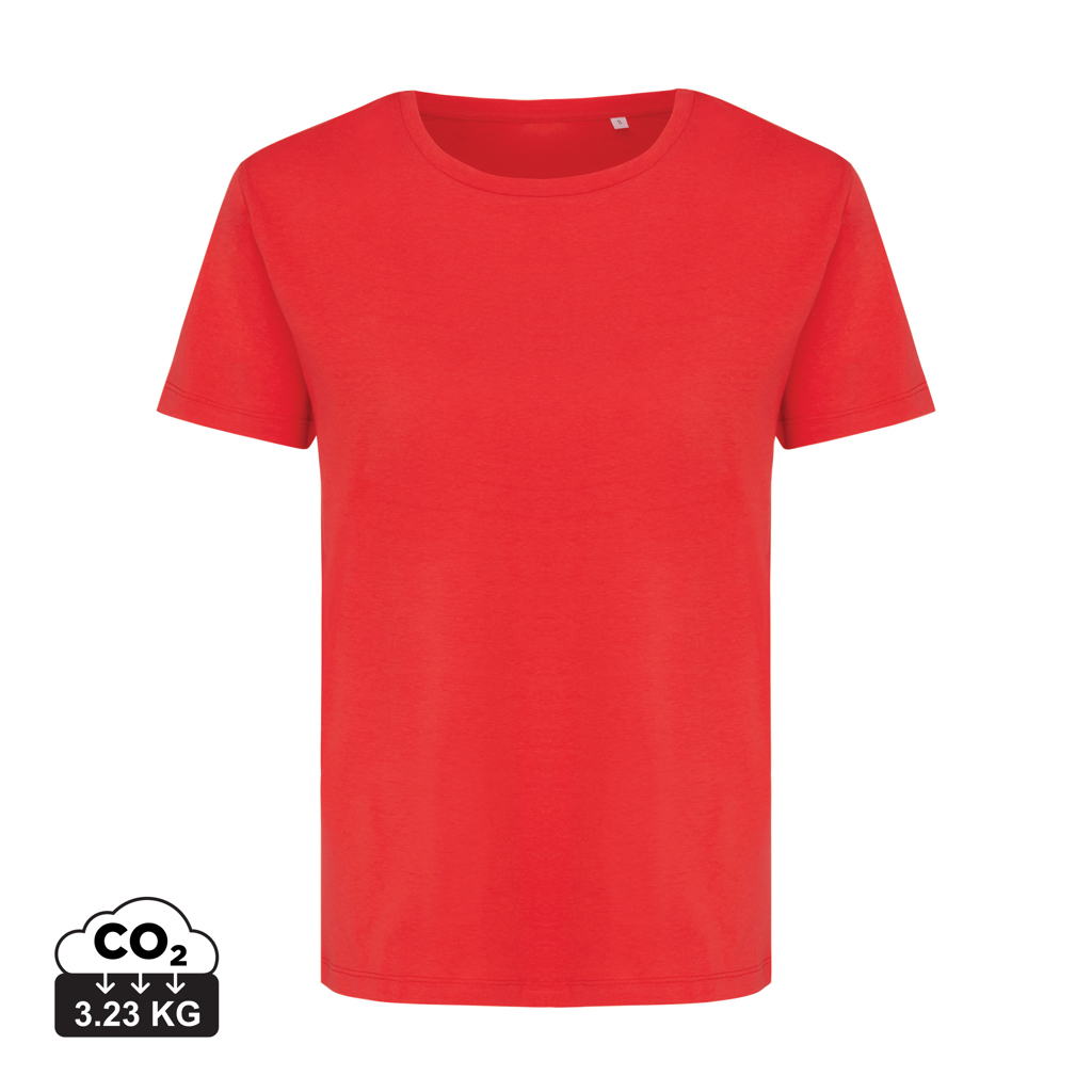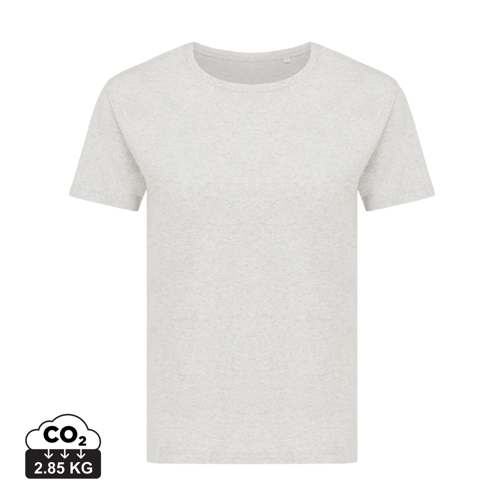 Ženska moderna majica kratkih rukava izrađena od 100% pamuka, od čega je 70% organskog i 30% recikliranog, 160 G/M². Majica ima lijep okrugli izrez od vlastite tkanine. Korištenje originalnih recikliranih i organskih tkanina te tvrdnje o utjecaju na okoliš zajamčene su korištenjem AWARE™ disruptivnog fizičkog tragača i blockchain tehnologije. Skeniranjem QR koda dobit ćete pristup namjenskoj digitalnoj putovnici proizvoda. 2% prihoda od svakog prodanog proizvoda bit će donirano Water.org-u. Ovaj proizvod ima OEKO-TEX® STANDARD 100 2303045 Centexbel certifikat. Zbog prirode recikliranih pređa, mogu se pojaviti nečistoće i varijacije u boji.