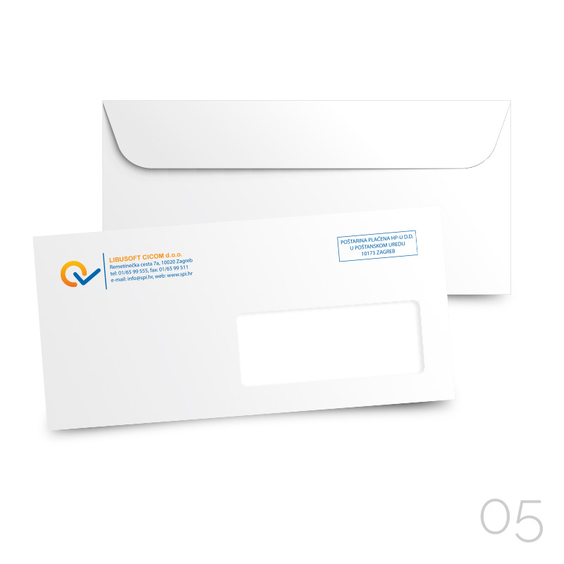 U pravilu se proizvode strojno, a najčešće upotrebljavana koverta je popularno zvana “American format” 230×110 mm.Kuverta je potrebna svim poduzećima za svakodnevno slanje raznih tiskovnih materijala kao što su ponude, dopisi, računi i sl.Rok izrade koverte ovisi o pripremljenosti vaših materijala za tisak. Naručujete li ih prvi puta tada ih prvo treba dizajnirati i izraditi pripremu za tisak (rok izrade od 3 do 7 radnih dana). Naručujte li ponovno tisak kuverti, bez izmjena ili ako već imate vlastitu pripremu za tisak ili gotove fotolite tj. grafičke filmove (sukladne našim standardima tj. tehnološkom procesu), rok može biti puno kraći.U našem kalkulatoru za naručivanje nakon odabira željenih opcija i količine automatski se izračunava cijena. Za složenije izrade molimo vas da nam pošaljete mail s potrebnim informacijama kako bi kalkulacija cijena kuverti bila što točnija.