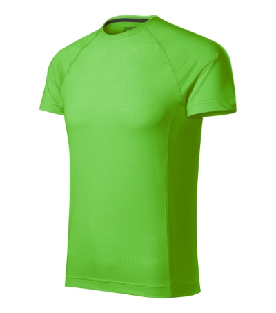 Gladak rastezljivi brzosušeći materijal, idealan za sport i aktivnosti u pokretu, uski kroj formiran bočnim dijelovima, dekorativno prošiveni ravni šavovi , uzak porub ovratnika od gornjeg materijala, unutarnji dio ovratnika zaštićen kontrastnom trakom, kratki raglan rukavi, oblikovan i lagano produžen stražnji dio , etiketa u obliku naljepnice koja se može skinuti, pogodno za sublimacijski tisak (svijetle boje)