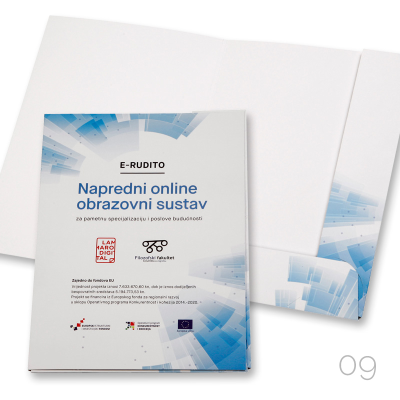 Poslovna mapa je proizvod od debljeg papira ili kartona koji služi za odlaganje tiskanih materijala. Obično ih izrađujemo u A4 formatu. Mape, fascikle, izrađujemo od 260 – 300 gramskog kartona ili 300 – 350 gramskog Kunstdruck-a. Najčešće ih tiskamo iz kolora, ali ih možemo otisnuti i u jednoj, dvije ili tri boje, jednostrano ili obostrano. Možemo ih na puno načina doraditi kao npr. plastificirati (mat ili sjajno), lakirati (djelomično ili potpuno), te na razne načine izbijati. U našoj tiskari postoji nekoliko standardnih načina izbijanja ili izštancavanja, a sve dodatne zahtjeve u mogućnosti smo ispuniti, tj. samo za vas izraditi ćemo alat za izštancavanje pa će vaše mape biti jedinstvene na tržištu.Svim tvrtkama, poduzećima, obrtima, društvima, udrugama, klubovima koji imaju tiskane materijale potrebne za ulaganje u mape. To mogu biti razne ponude, letci, memorandumi i slično.Rok izrade mape ovisi o pripremljenosti vašeg materijala za tisak. Naručujete li ih prvi puta tada je prvo potrebno mape dizajnirati i izraditi pripremu za tisak, te je rok izrade 3 do 7 radnih dana. Naručujte li ponovni tisak svojih mapa, bez izmjena ili već imate vlastitu pripremu za tisak (sukladnu našim standardima tj. tehnološkom procesu), rok može biti puno kraći.U našem kalkulatoru za naručivanje nakon odabira željenih opcija i količine automatski se izračunava cijena. Za složenije izrade molimo vas da nam pošaljete mail s potrebnim informacijama kako bi kalkulacija cijena mapa bila što točnija.