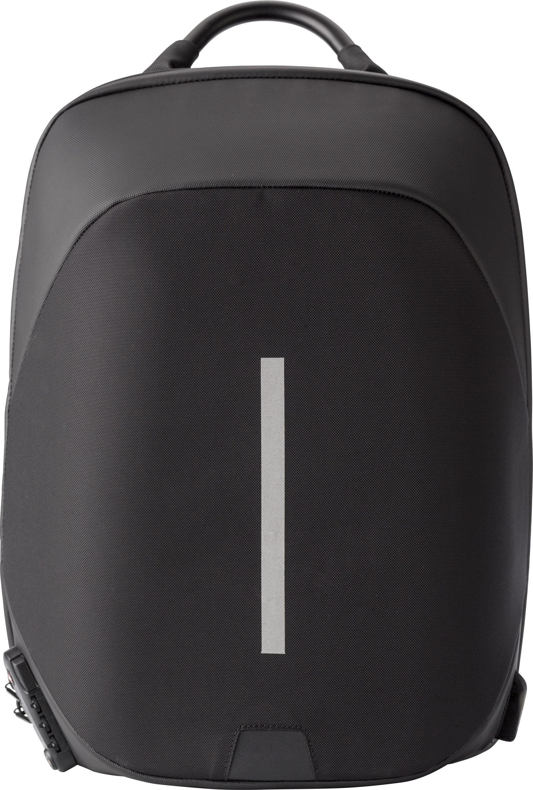 Ruksak od najlona (1200D) s unutarnjim džepovima, uključujući podstavljeni pretinac za prijenosno računalo (15 inča). Podstavljena leđa i podstavljene i podesive naramenice. Troznamenkasti kombinirani brava, USB priključak i kabel, reflektirajuća pruga i posebna značajka za smanjenje težine.