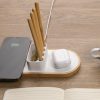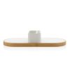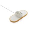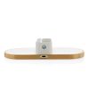 Dual 10W fast wireless charger with pen holder made with RCS (Recycled Claim Standard) certified recycled ABS. Total recycled content: 31% based on total item weight. RCS certification ensures a completely certified supply chain of the recycled materials. The base is made from FSC®100% bamboo. Wireless charging compatible with Android latest generations, iPhone 8 and up. Can charge two phones at the same time or charge any other wireless device. With 4 pen holes for storing pens/pencils and small storage for business card or other small objects. Item and accessories PVC free. Including 120 cm type C charging cable made from RCS certified recycled TPE. Packed in FSC®mix kraft box. Type-C in; Input 5V/2A; 9V/2A; Wireless output 5V/1A;9V/1.1A; (10W) Registered design®