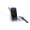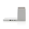 15W 3-in-1 fast wireless charger with pen holder made with RCS (Recycled Claim Standard) certified recycled ABS. Total recycled content: 73% based on total item weight. RCS certification ensures a completely certified supply chain of the recycled materials. Bamboo wireless charging area made from FSC 100% bamboo. With dual coil 15W charger and one 5W charger for other wireless chargeable items like earbuds and 2.5W watch charger. With one USB A port and one USB C on the back to charge via cable. Wireless charging compatible with Android latest generations, iPhone 8 and up. Item and accessories PVC free. Including 120 cm type C charging cable made from RCS certified recycled TPE. Packed in FSC mix kraft box. 9V/3A; W: 9V/1.1A; 9V/1.67 A/(15W), Earbuds: 5V/1A (5W), Watch: 5V/0.5A (2.5W), USB/Type-C output: 5V / 2.1A . Registered design®