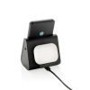 3-in-1 wireless charger with powerbank dock made with RCS, ABS and RCS recycled PC. When you are at home or work use the stand to charge your mobile devices. When you have to go somewhere simply take out the magnetic powerbank from the dock and click it on your phone. Total recycled content: 59% based on total item weight. RCS certification ensures a completely certified supply chain of the recycled materials. The wireless charger comes equipped with a magnetic 5W wireless charger and an additional 5W wireless charger suitable for earbuds cases or other small wireless chargeable devices and a 2.5W wireless charger for smartwatches ( Apple watches only). Including RCS certified 120 cm recycled TPE cable. Packed in FSC® mix packaging. Item and accessories 100% PVC free. Input: 5V/2.4A for optimal use. Output: Phone: 5V/1A Earbuds: 5V/1A, Watch: 5V/0.5A. PVC free.