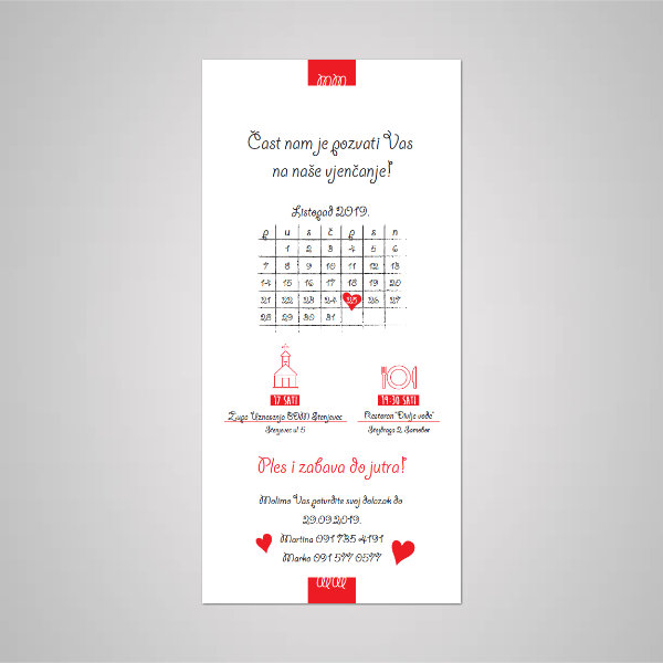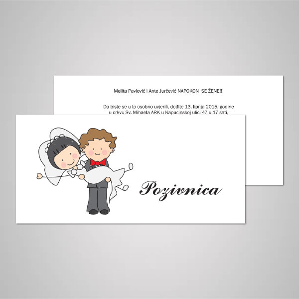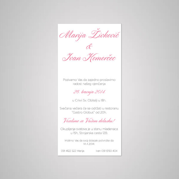 Kreativnost teksta pozivnice prilagođavamo dizajnu prema vašim željama. Ukoliko nam dostavljate vlastiti dizajn, pomoći ćemo Vam u odabiru papira, tehnika tiska ili dorade.