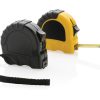 3 metre tape made with RCS (Recycled Claim Standard) certified recycled ABS. Total recycled content: 21% based on total item weight. RCS certification ensures a completely certified supply chain of the recycled materials. With deluxe TRP rubber grip for smooth grip. With release/lock button. With 16mm single sided tape, yellow with black carbon steel hook. With polyester wrist strap. Packed in FSC® mix kraft packaging