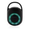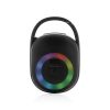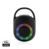 Portable but powerful 5W speaker with integrated RGB light ring. Made with casing made from 100% RCS standard recycled ABS plastic. Total recycled content: 36% based on total item weight. With 1200 mAh lithium battery for a play time of up to 6 hours. Re-charging is done in 4 hours. With integrated MIC to answer calls. With integrated TF slot and USB port. Comes with BT 5.0 for smooth operation up to 10 metres. With clip to attach the speaker to your backpack or any other object. Including PVC free recycled TPE material charging cable. ; Item and accessories 100% PVC free. Packed in FSC mix packaging.