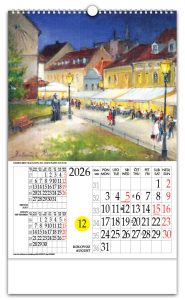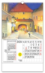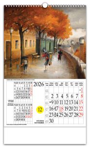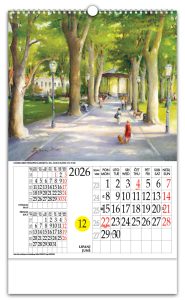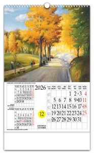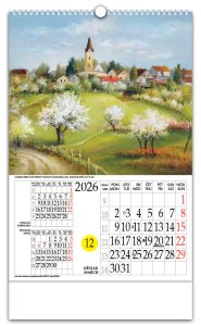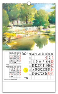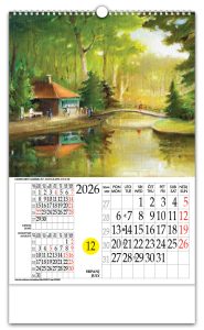 Zidni kalendar s rotacijskim krugomZidni kalendar koji, uz prikaz mjesečnog kalendara, ima istaknuti tekući dan u mjesecu kroz posebno određen otvor na kalendaru i koji se može mijenjati pomicanjem rotacionog brojčanika na poleđini kalendara. Time je aktualni datum u mjesecu posebno istaknut i vidljiv, a promjena datuma je lagana i brza. Zbog svega navedenog, te i poradi pomno odabranih i atraktivnih fotografija sa 4 različitih tema, rotacijski zidni kalendar s rotacijskim krugom jedinstven je i prepoznatljiv na tržištu od 1997.Pokazivač datumaPokazivač datuma je odštancana kružnica na svim listovima kalendara. Laganim pomicanjem datumara, na pokazivaču dobivamo prikaz datuma današnjeg dana.DatumarDatumar je nazubljen krug smješten ispod listova kalendara te prikladnim rješenjem pričvršćen za podlogu. Na svom obodu ima datume cijeloga mjeseca, on svojim kružnim isječkom vrlo malo proviruje na lijevom bočnom bridu kalendara. |