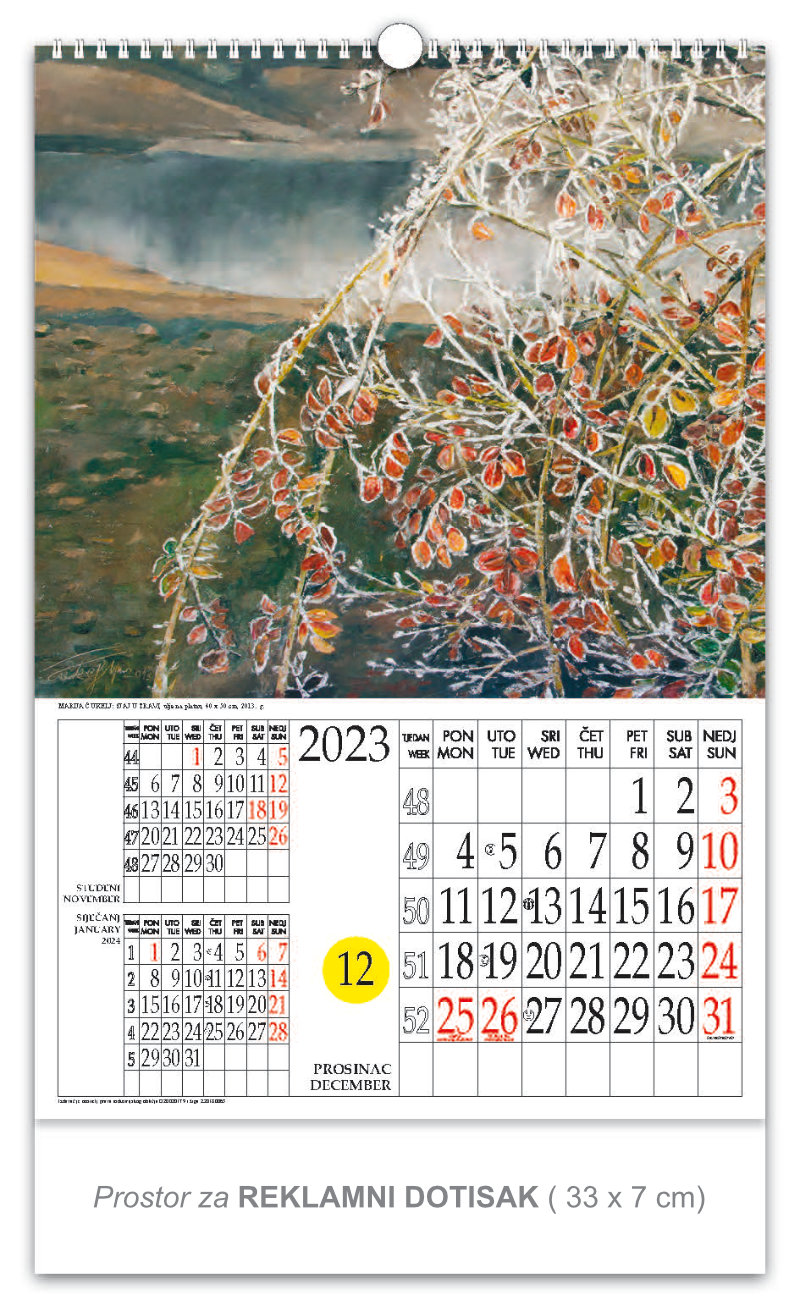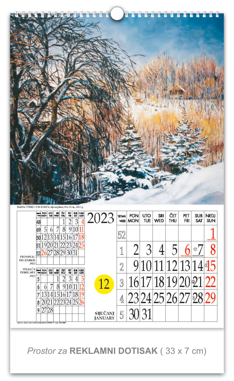 | Pakiranje | pakirano u transportnim kutijama po 25 komada kalendara i 25 komada natron vrećica |