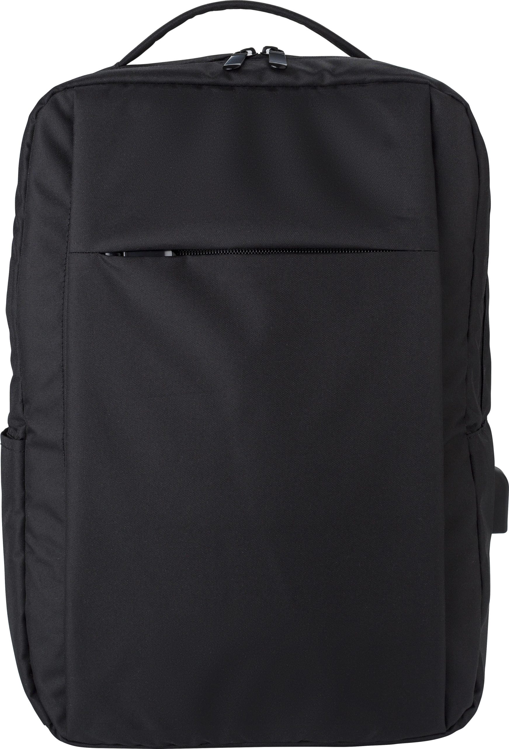 Ruksak za prijenosno računalo (16 inča) od RPET-a (300D) s detaljima od 210D materijala. Unutrašnjost s više džepova, džepom za prijenosno računalo s čičak zatvaračem, jednim prednjim džepom s patentnim zatvaračem. Otvaranje s USB-A priključkom sa strane.