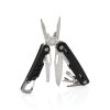 Strong and durable multitool with 11 functions. With aluminium case and stainless steel tools. Tools include: needle nose plier, regular plier, wire cutters, knife, phillips screwdriver, flat screwdriver, saw, can opener, bottle opener, wire stripper, carabiner. Packed in gift box.