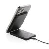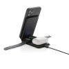 Luxury and foldable 3-in-1 wireless charger made with RCS certified recycled PU. Total recycled content: 5% based on total item weight. RCS certification ensures a completely certified supply chain of the recycled materials. The wireless charger comes equipped with a magnetic 15W wireless charger on the front. On the reverse is an additional 5W wireless charger suitable for earbuds cases or other small wireless chargeable devices and 2.5W wireless charger for smartwatches ( Apple watches only) Including RCS certified 120 cm recycled TPE cable. Packed in FSC® mix kraft packaging. Item and accessories 100% PVC free. Input: 9V/3A for optimal use. Output: Front: 9V/1.1A; 9V/1.67 A/(15W), Earbuds: 5V/1A (5W), Watch: 5V/0.5A.