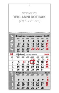 Trodjelni sivi kalendar spirala Poslovni kalendari su vrlo funkcionalni, jer na istom listu imamo uvid u prethodni, tekući i naredni mjesec. Razlikujemo poslovne kalendare po tome dali su mjeseci na jednom ili na više odvojenih listova. Postoji više načina obilježavanja datuma: klizač – po kliznoj traci pomičemo obilježavač datuma, jahač – obilježavač datuma umećemo u utor lista kalendara i elektrostatska folija – foliju pomičemo po površini kalendara. Dotisak Vašeg logotipa i/ili vaših podataka na zaglavlje poslovnih kalendara nije uračunat u cijenu, ali smo Vam u mogućnosti ponuditi isto.