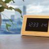 Large LED screen clock made with RCS (Recycled Claim Standard) certified recycled ABS and FSC® 100% bamboo. Total recycled content: 76 % based on total item weight. RCS certification ensures a completely certified supply chain of the recycled materials. With high quality LED screen. Functions: clock, alarm, snooze, temperature, 12/24 hour option. Including 100 cm type C charging cable made from RCS certified recycled TPE. Packed in FSC® mix kraft box.
