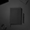 Sleek A5 notebook in a clean touch. Its cover, crafted from 30% recycled matte PU, features a magnetic closure and an integrated pen holder. Within, 80 pages/160 sheets of 70 gsm lined recycled paper, suitable for all your note-taking needs. The paper insert can be replaced, allowing for prolonged use over time. Certified by GRS (Global Recycled Standard), GRS certification guarantees that the entire supply chain of the recycled materials is certified. The total recycled content is based on the overall product weight. This product contains 54% GRS-certified paper and 5 % GRS-recycled PU.