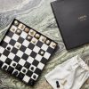 Classic chess game in black and white. The pieces are lacquered wood. The game comes with an excellent storage box that also works as an attractive decorative detail in your home.