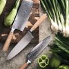 This Santoku knife is ideal for cutting meat and larger vegetables or chopping herbs. The sturdy pakkawood handle is ergonomically designed, making the knife easy and comfortable to use. This means you can work with the knife for a long time without tiring your hand. The blade has an incredibly hard core of VG10 steel which is cast in 67 layers of steel. The result is a durable blade with an incredible sharpness and outstanding cutting performance.