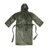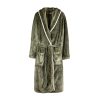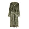Soft, cosy robe in luxury plush material with a large hood and decorative piping. Two front pockets and a waist belt. The robe is made from 70% recycled material from PET bottles. We don’t like to transport air, so we’ve chosen to vacuum-pack this robe to reduce our carbon footprint. OEKO-TEX Standard 100 means that the robe’s material meets multiple product safety criteria. Manufactured by GRS (Global Claim Standard), the GRS certification ensures that the entire supply chain of the recycled materials is certified. Total recycled content is based on total product weight. Size S/M.