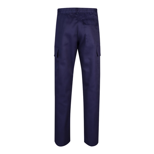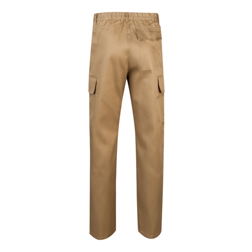 Hlače od kepera s više džepova (190g/m²), od pamuka (20%) i poliestera (80%). S elastičnim pojasom i pet džepova (2 francuska džepa, 2 bočna džepa s umetcima i 2 stražnja džepa s umetcima)