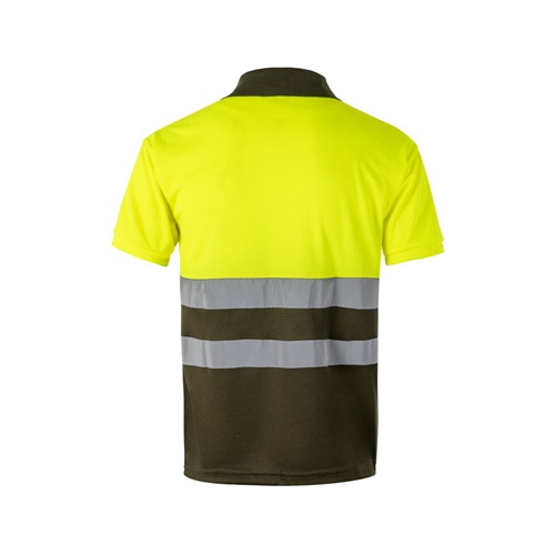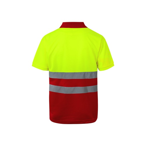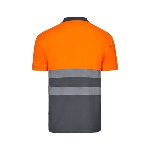 Dvobojna polo majica bird-eye (160g/m²) s kratkim rukavima, od poliestera (100%). Gumbi i ovratnik u kontrastnoj boji. Rebrasti ovratnik. Reflektirajuće pruge na torzu. Uključuje džep na prsima. Proizvod u skladu s EU Reg. 2016/425, ovjeren prema EN20471 i klasa br. 1