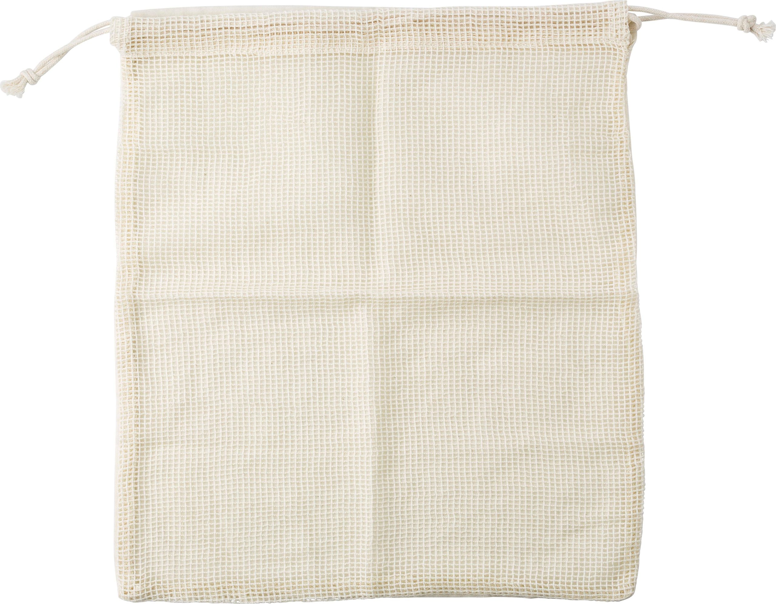 Vrećica za voće i povrće od 100% organskog pamuka s mrežicom s jedne strane i zatvaranjem uzicama.
