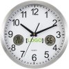 Elegantni plastični zidni sat s digitalnim funkcijama termometra i higrometra.